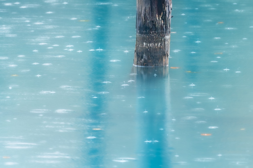 雨滴る秋の青い池