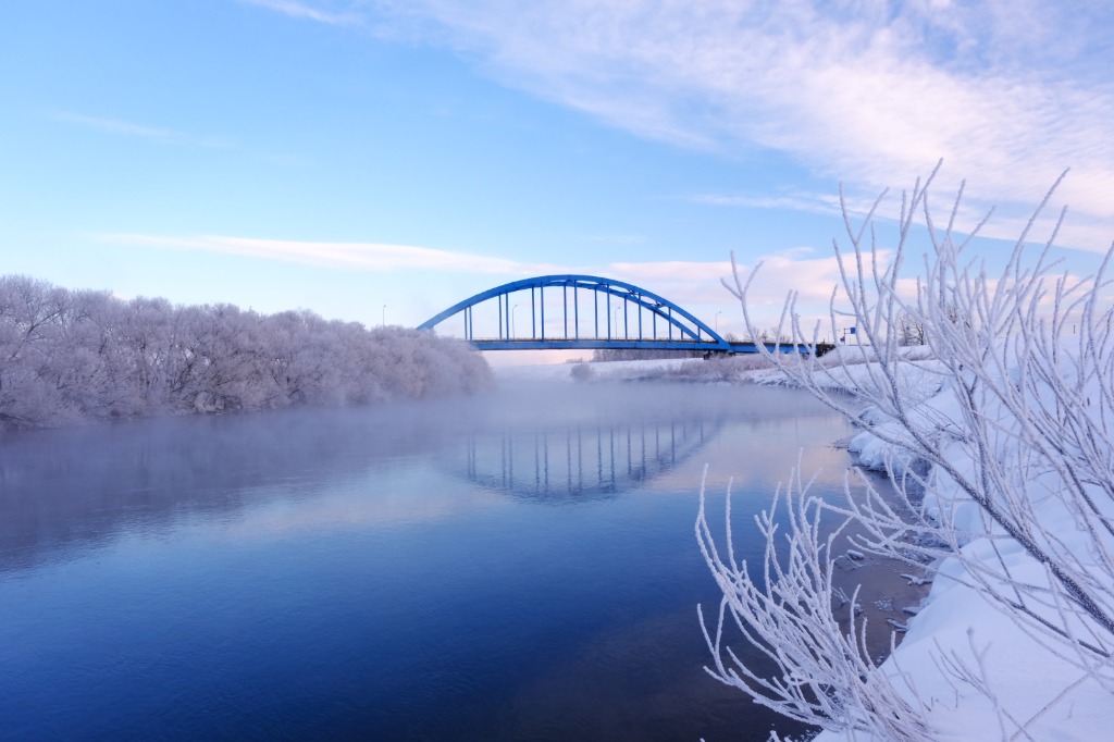 極寒の地祖瀬川の朝景