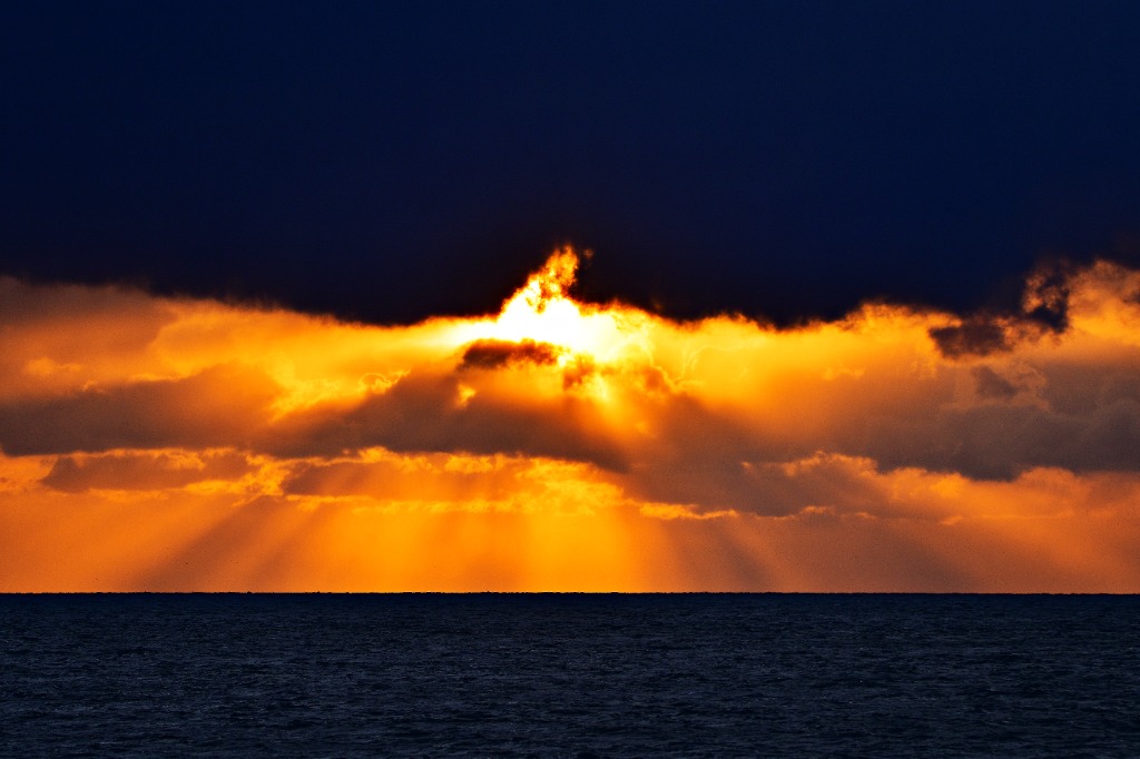 雲間から落陽の輝き