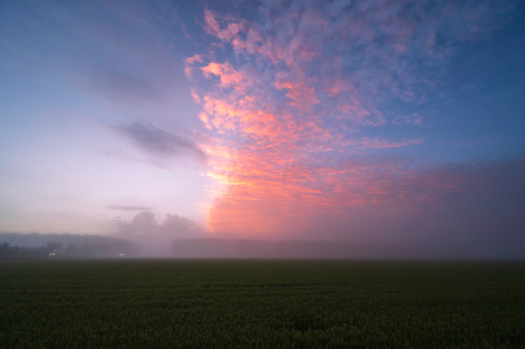 濃霧の朝日に染まる雲