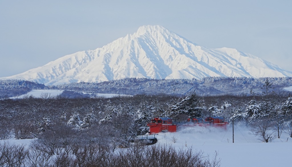 利尻富士とラッセル車