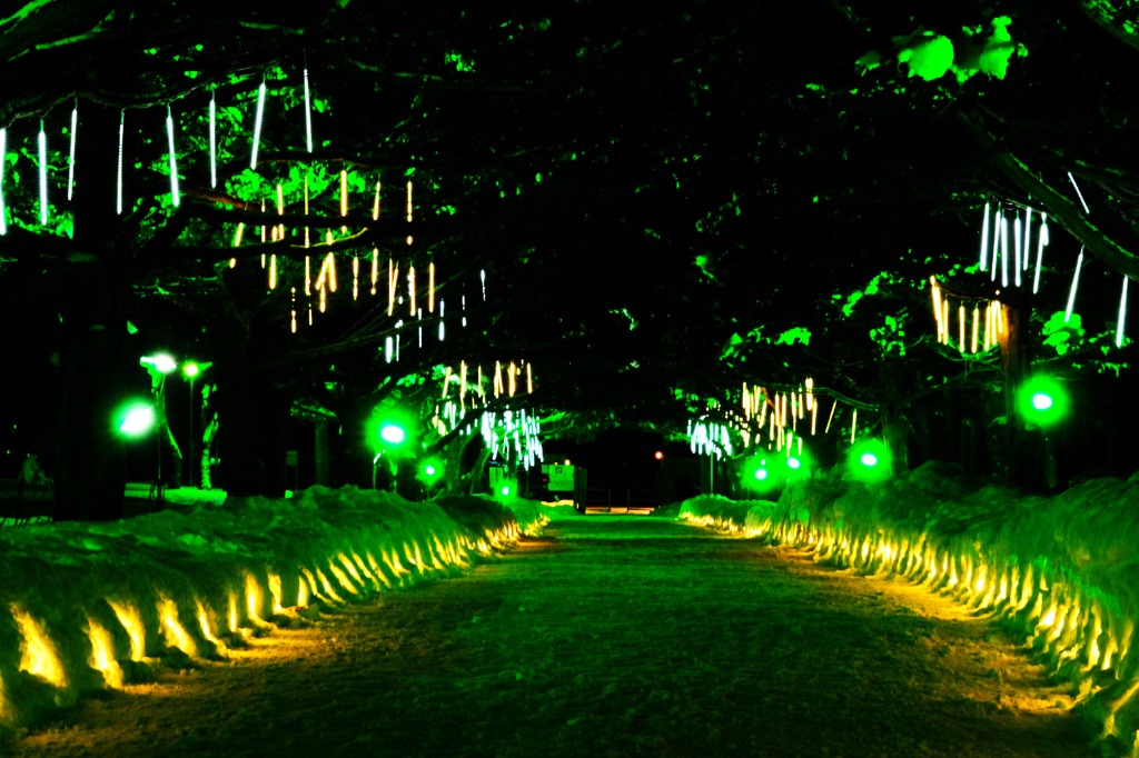 王子製紙千歳第一発電所オンコ並木のライトアップ