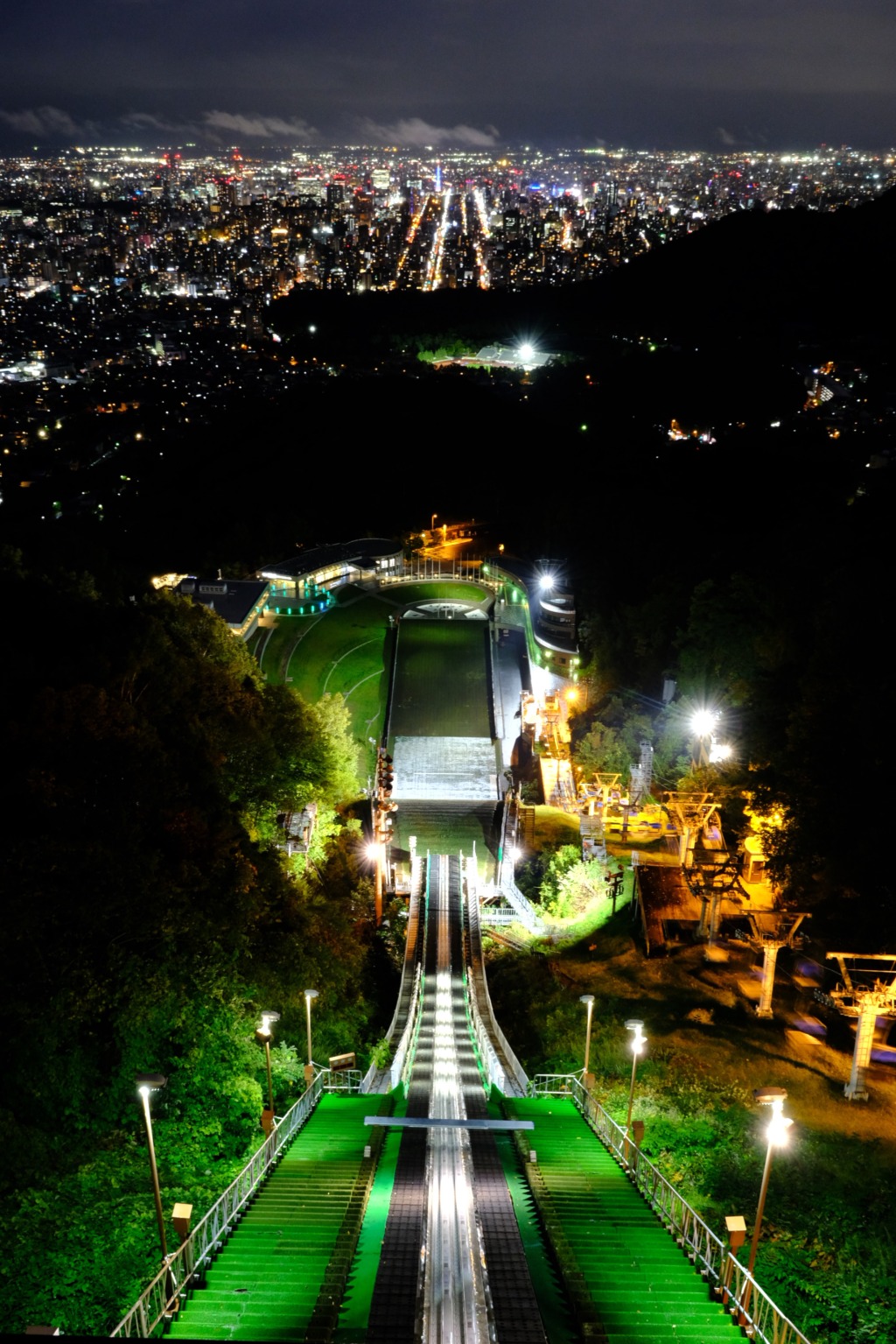 大倉山ジャンプ競技場のジャンプ台と札幌の街並み