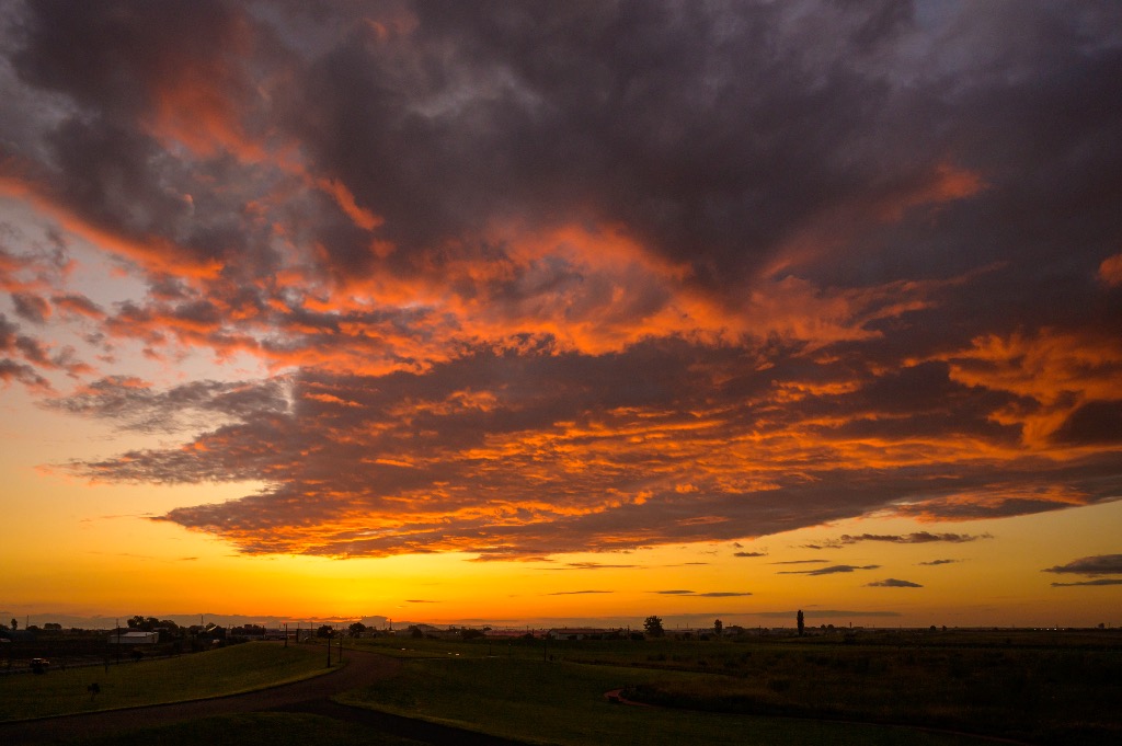 早朝の丘珠緑地、燃える空