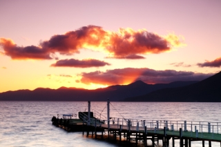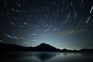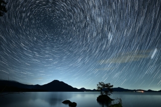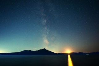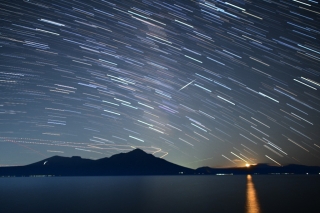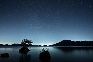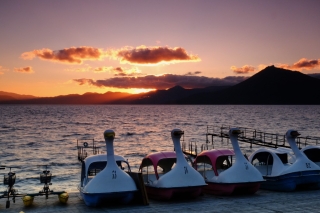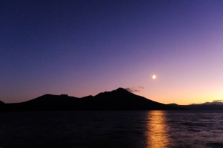 眠りにつく支笏湖に浮かぶ恵庭岳