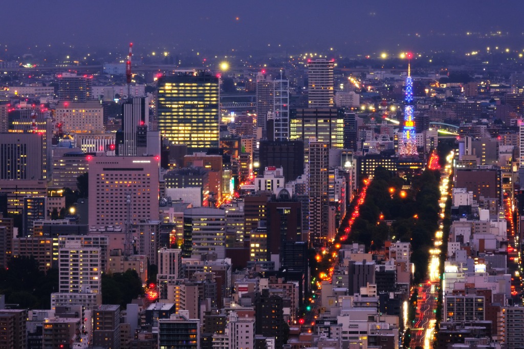 札幌市のシンボル「大通公園とテレビ塔」とビル群の夕景