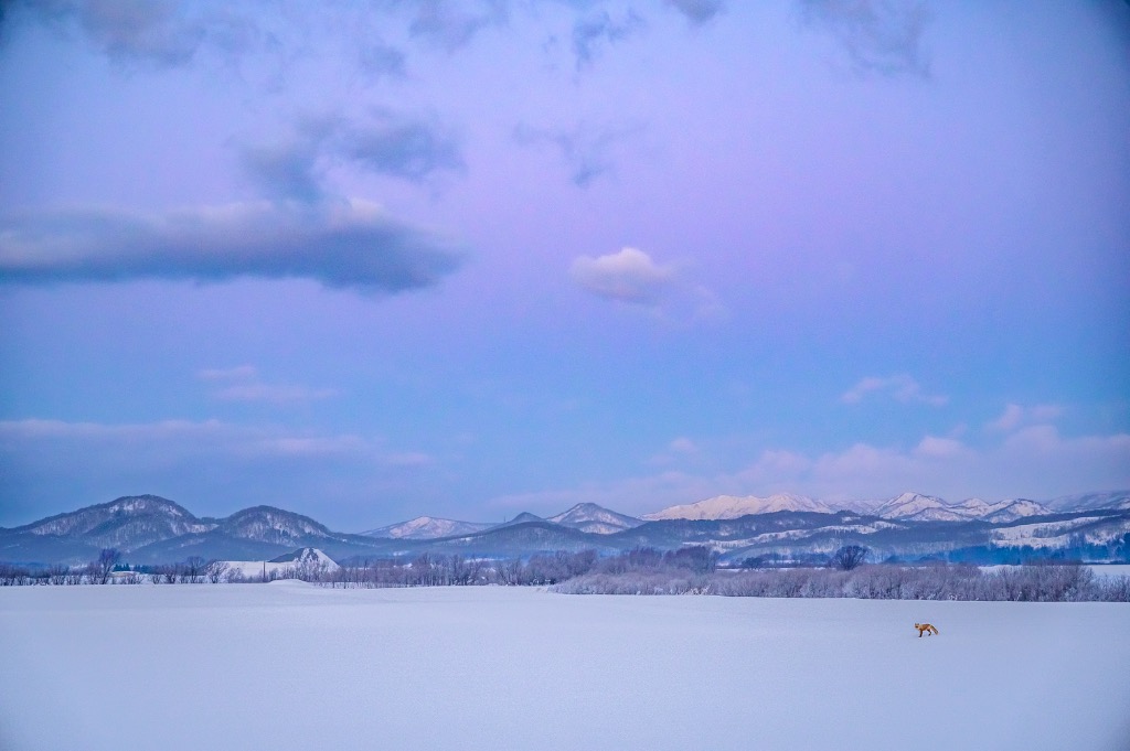 大自然に佇むキタキツネ